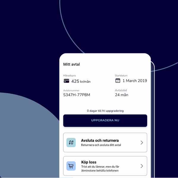 Ved avtalens utløp kan du velge om du vil kjøpe ut produktene dine, oppgradere til nye eller returnere dem. Hvis du ønsker å returnere produktene, sender vi deg en gratis fraktseddel på e-post. Hvis du velger å beholde produktene, kan du kjøpe dem for mellom 8-12 % av produktets verdi. Hvis du ønsker å si opp avtalen, kan du kontakte oss.